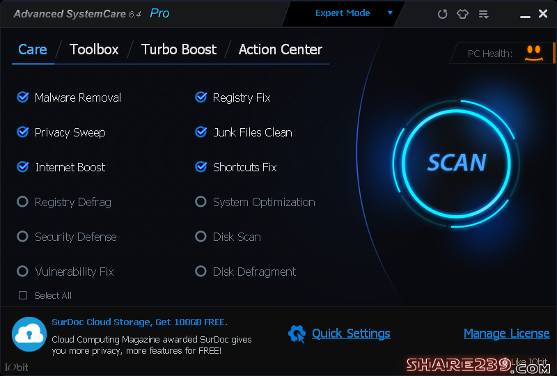 Advanced SystemCare PRO cung cấp một dịch vụ sẵn sàn và tự động giải quyết các vấn đề sức khỏe của mính tính, chống phần mềm gián điệp, bảo vệ sự riêng tư, hiệu quả hoạt động điều chỉnh-up, hệ thống và khả năng làm sạch. Điều này mạnh mẽ và từng đoạt giải thưởng chính xác công cụ sửa chữa lỗi stubborn, cleans out clutter, tối ưu hoá mạng Internet và tải về tốc độ, bảo đảm an ninh cá nhân và duy trì tối đa hiệu suất của máy tính tự động.