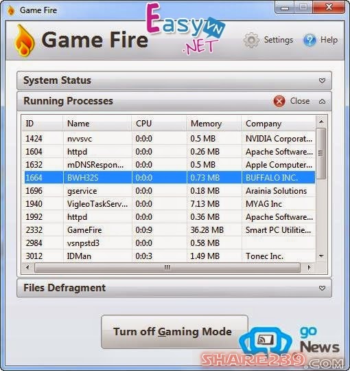 Tắt đi các dịch vụ “thừa” của Windows và giải phân mảnh thư mục chứa game, Game Fire sẽ giúp bạn chơi game “mượt” hơn.