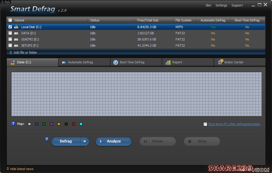 Smart Defrag 2 làm một công cụ iễn phí với hơn 3 triệu người dùng, cung cấp khả năng chống phân mảnh nhanh và hiệu quả để ổ đĩa cứng của bạn chạy nhanh hơn và hiệu suất cao hơn.