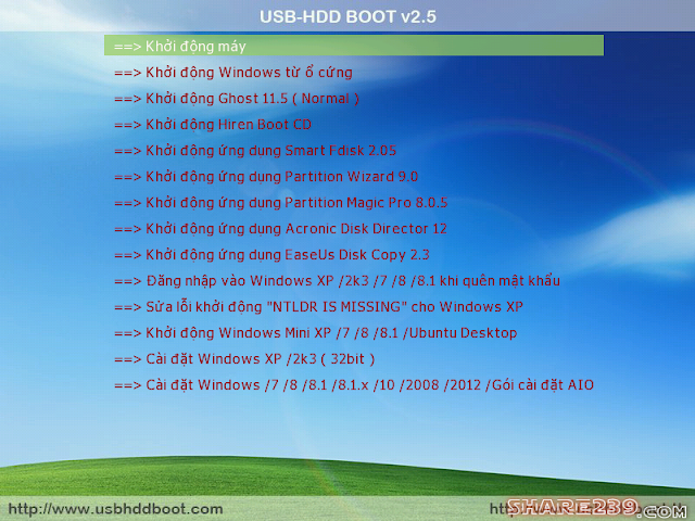 USB-HDD BOOT là một ứng dụng hỗ trợ người dùng dễ dàng tạo menu boot cứu hộ máy tính đa chức năng cho usb, ổ cứng di động hoặc menu boot trên các HĐH Windows PC của Microsoft: XP /2k /2k3 /2k8 /Vista /7 /8 /8.1 /8.1 Update /10 ( 32bit và 64bit ).