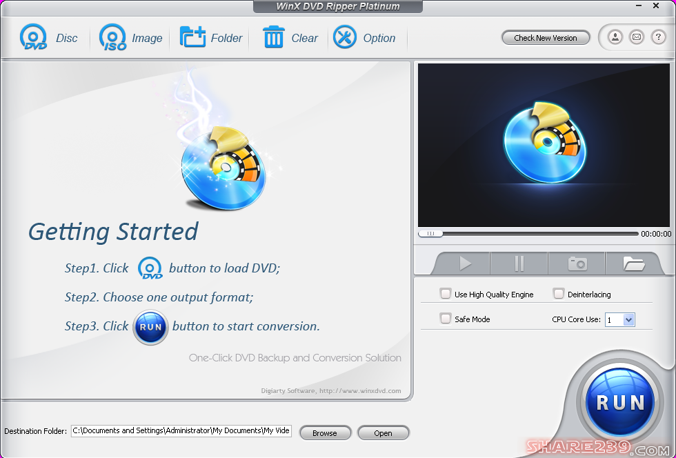 1:1 DVD Copy : Giải mã và sao chép DVD tới máy tính với 100% chất lượng video gốc, âm thanh và phụ đề chỉ trong vòng 5 phút.